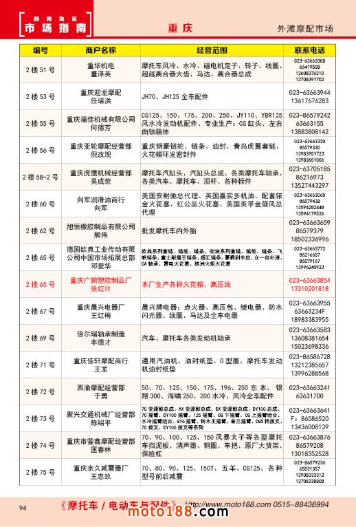內94 重慶外灘摩配市場經銷商名錄