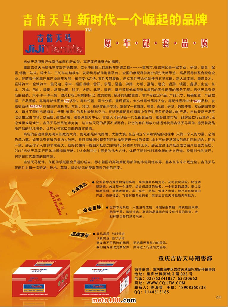 今年第四期雜志雖然在全國市場都有發行,一些不在市場的地區商戶除了通過www.moto188.com網站閱讀,也可到我們展位直接領取。由于本期雜志需要宣傳的企業較多,原來的摩托車及電動車行業的資訊的內容,順延到下一期發布。