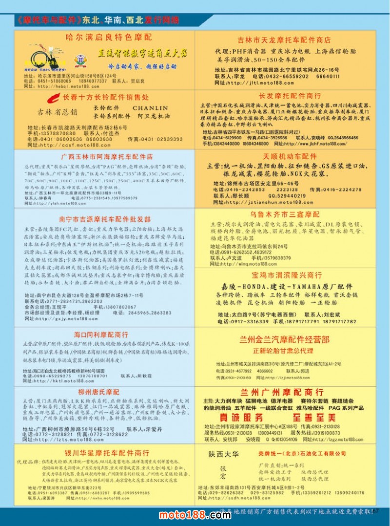 今年第四期雜志雖然在全國市場都有發(fā)行,一些不在市場的地區(qū)商戶除了通過www.moto188.com網站閱讀,也可到我們展位直接領取。由于本期雜志需要宣傳的企業(yè)較多,原來的摩托車及電動車行業(yè)的資訊的內容,順延到下一期發(fā)布。