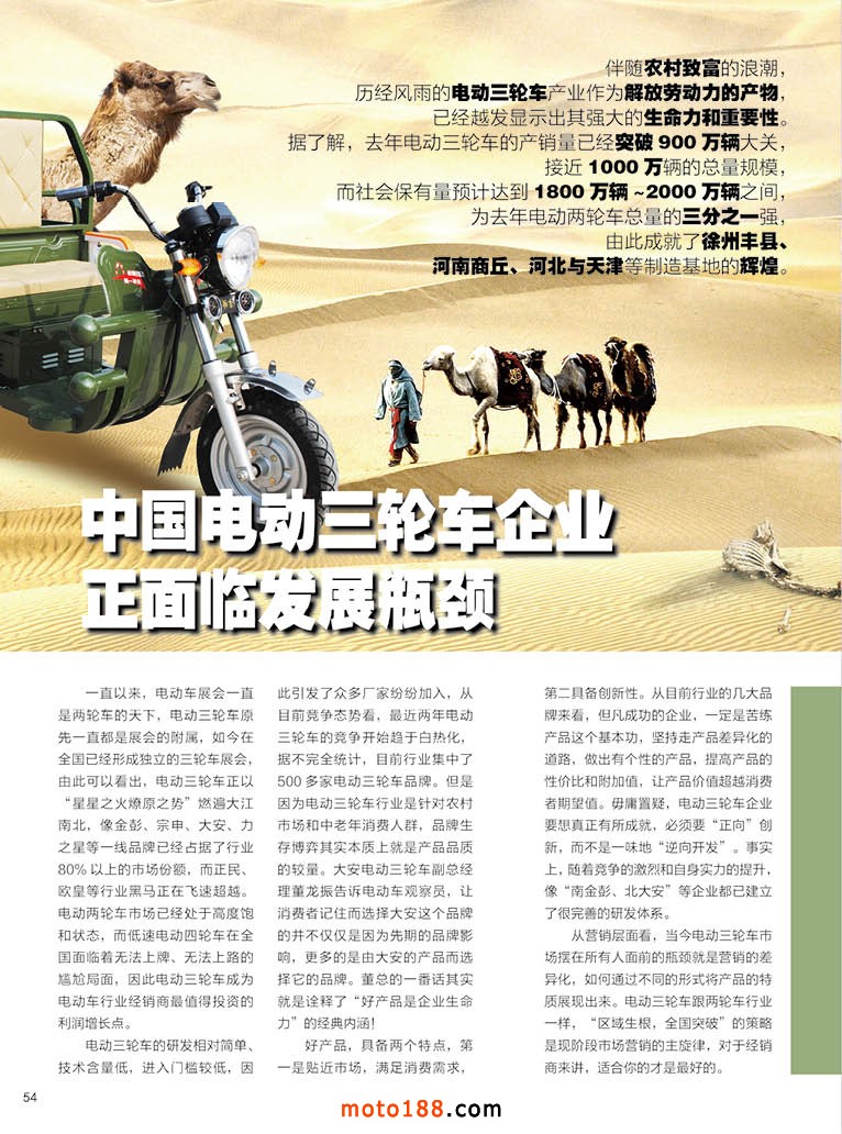 內(nèi)54 中國電動三輪車企業(yè)正面臨發(fā)展瓶頸