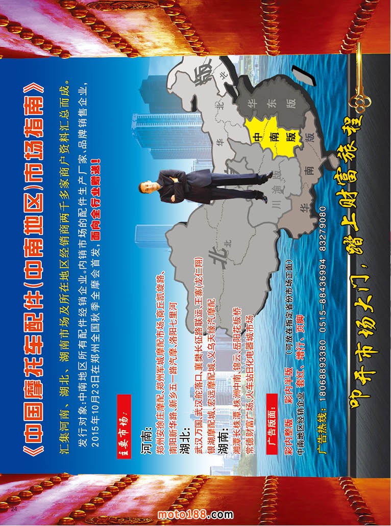 目前《中南地區市場指南》工作進展正常,通過對這些市場的深入走訪,我們發現了一些問題,也解決了部分問題,這是我們編書之外得到了新的收獲。工作雖然辛苦,但意義重大,因而雖苦尤甜,秋季鄭州全摩會我們展位在2110,歡迎領取《中南地區市場指南》及其它雜志和書。