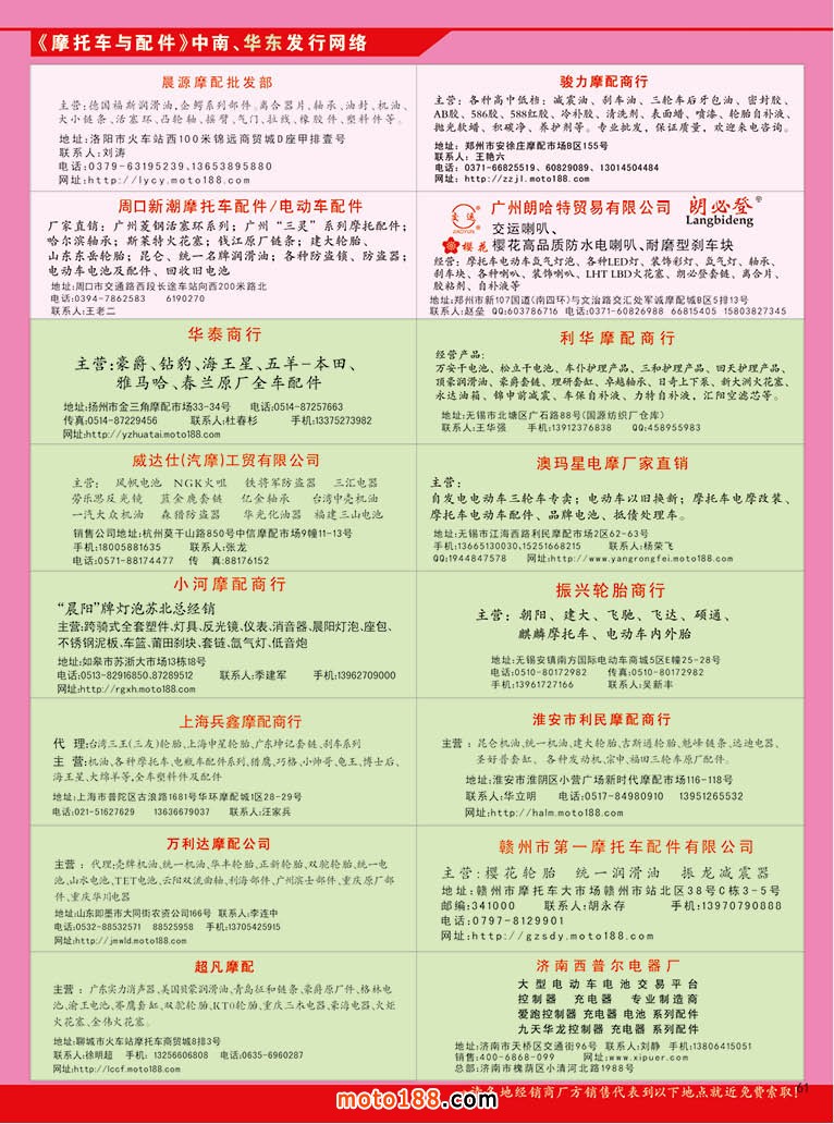 目前《中南地區市場指南》工作進展正常,通過對這些市場的深入走訪,我們發現了一些問題,也解決了部分問題,這是我們編書之外得到了新的收獲。工作雖然辛苦,但意義重大,因而雖苦尤甜,秋季鄭州全摩會我們展位在2110,歡迎領取《中南地區市場指南》及其它雜志和書。