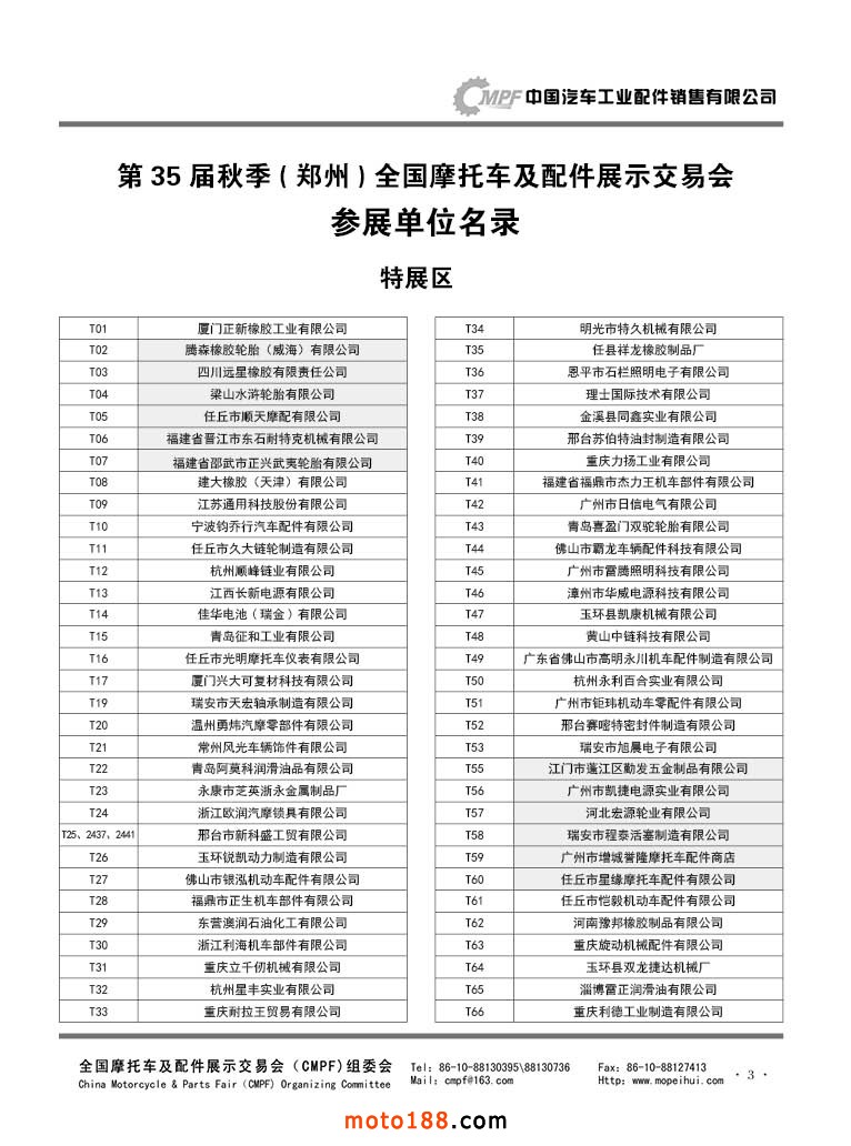 3 第35屆秋季(鄭州)全國摩托車及配件展示交易會參展單位名錄