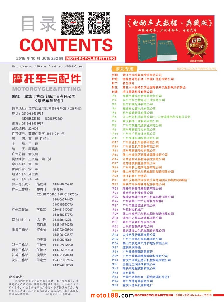 另外我們還帶來不多的《電動車大數據》制造卷和流通卷,這是我們去冬今春的勞動成果,這部分書因為沒有廣告的收入所以是收費的,大會促銷價360元/套上下卷,一共7萬多家單位匯總,數據的準確率在99%以上,每一個電話號碼都進行核對過。如果有既從事摩托車行業,也從事電動車及配件行業的企業,這套書還是非常有價值的。