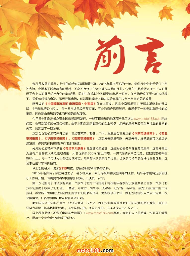 今年第十期雜志雖然在全國市場都有發行,一些不在市場的地區商戶除了通過m.zjsoxnet.com網站閱讀,也可到我們展位直接領取。由于本期雜志需要宣傳的企業較多,原來的摩托車及電動車行業的資訊的內容,順延到下一期發布。