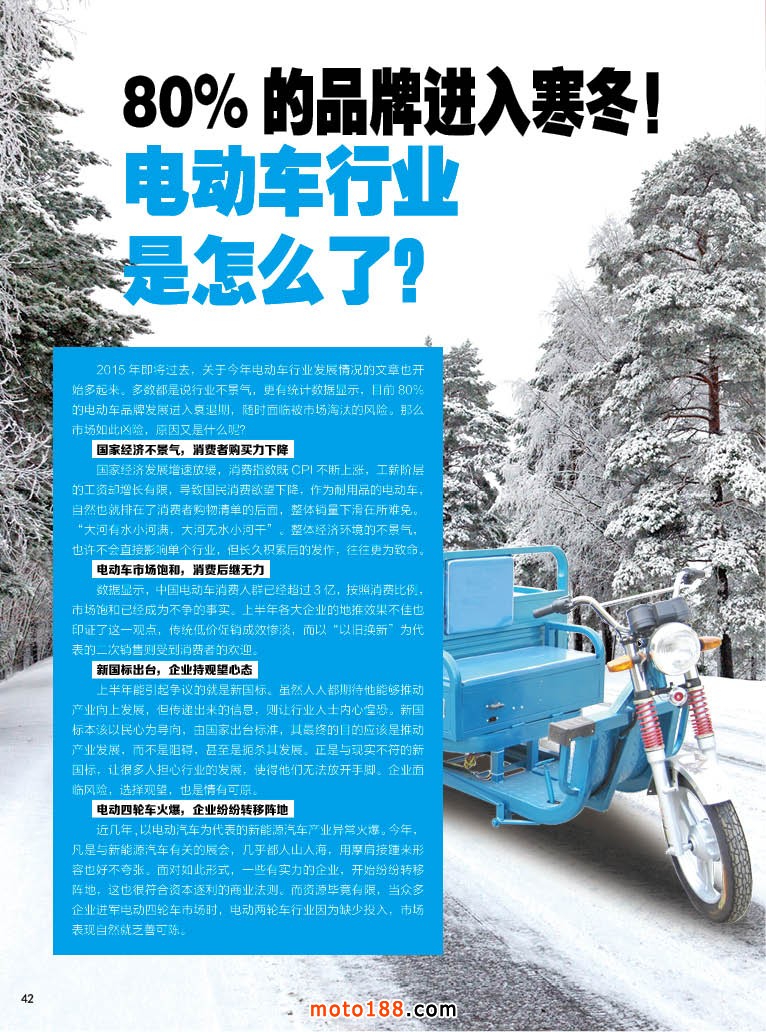 2016年的雜志在目前大環境下,將保持穩健的發展思路,進一步細化市場,提升服務。同時鞏固和維護好現有的市場。加強在電動車(三輪車、四輪車)宣傳和推廣力度,做好周邊市場的開拓工作,貼近市場運作,做好服務工作。傳統行業正遇上互聯網行業的跨界打劫,但是作為我們現在所從事的傳統產業同時還有一定的技術含量和要求的配件,受到的沖擊要少的多,但是我們要時時居安思危。