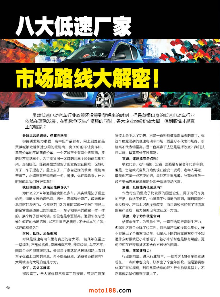 2016年的雜志在目前大環(huán)境下,將保持穩(wěn)健的發(fā)展思路,進一步細化市場,提升服務(wù)。同時鞏固和維護好現(xiàn)有的市場。加強在電動車(三輪車、四輪車)宣傳和推廣力度,做好周邊市場的開拓工作,貼近市場運作,做好服務(wù)工作。傳統(tǒng)行業(yè)正遇上互聯(lián)網(wǎng)行業(yè)的跨界打劫,但是作為我們現(xiàn)在所從事的傳統(tǒng)產(chǎn)業(yè)同時還有一定的技術(shù)含量和要求的配件,受到的沖擊要少的多,但是我們要時時居安思危。