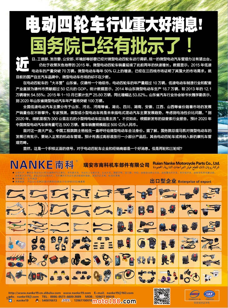 內52 電動四輪車行業重大好消息!國務院已經有批示了!內52 瑞安市南科機車部件有限公司