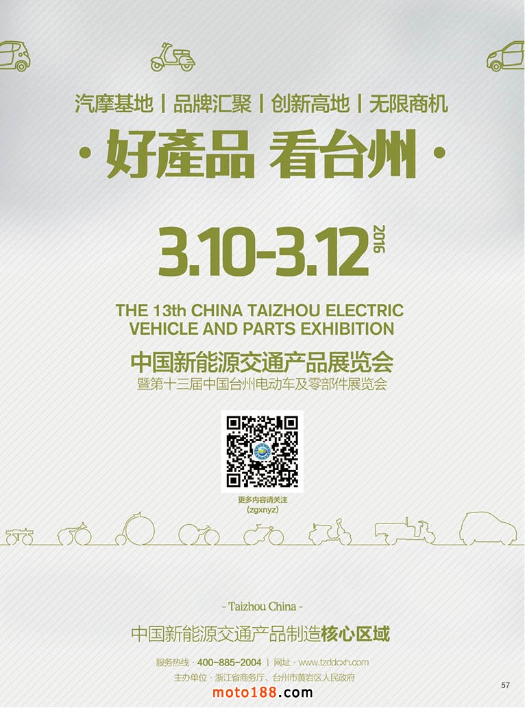 內(nèi)57 中國新能源交通產(chǎn)品展覽會暨第十三屆中國臺州電動車及零部件展覽會