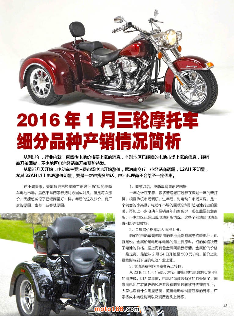 內43 2016年1月三輪摩托車細分品種產銷情況簡析