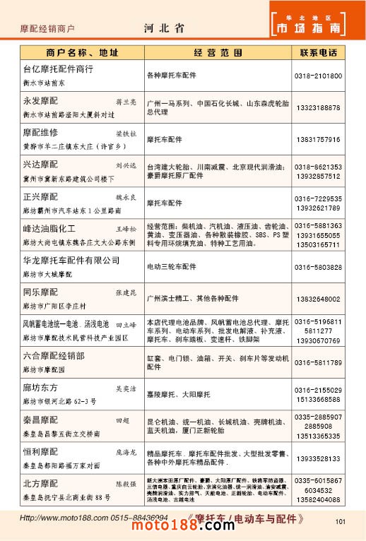 內(nèi)101 河北省摩托車(chē)配件經(jīng)銷(xiāo)商戶