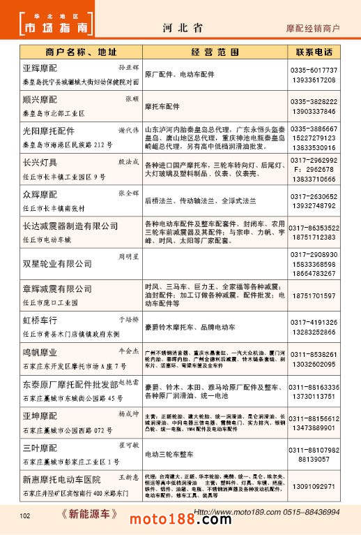 內(nèi)102 河北省摩托車配件經(jīng)銷商戶
