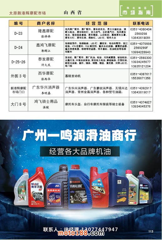 繼2010年開(kāi)始出版《中國(guó)摩托車(chē)配件市場(chǎng)指南》系列叢書(shū),到今年已經(jīng)是第六個(gè)年頭,本套叢書(shū)已經(jīng)過(guò)二次升級(jí)。《北方市場(chǎng)指南》是第二次升級(jí)版的終結(jié)版,和上個(gè)版本有所不同是我們將西北地區(qū)市場(chǎng)獨(dú)立成冊(cè),因而本次升級(jí)版為一套六本。