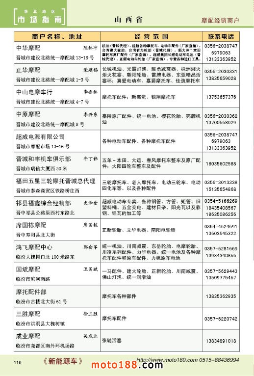 內116 山西省摩托車配件經銷商戶