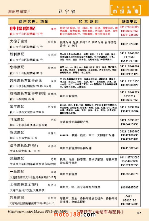 內147 遼寧省摩托車配件經銷商戶