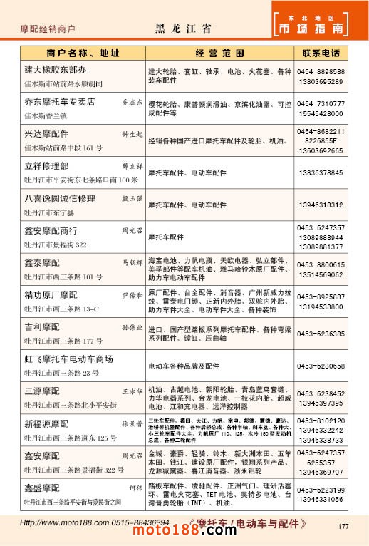內177 黑龍江省摩配經銷商戶