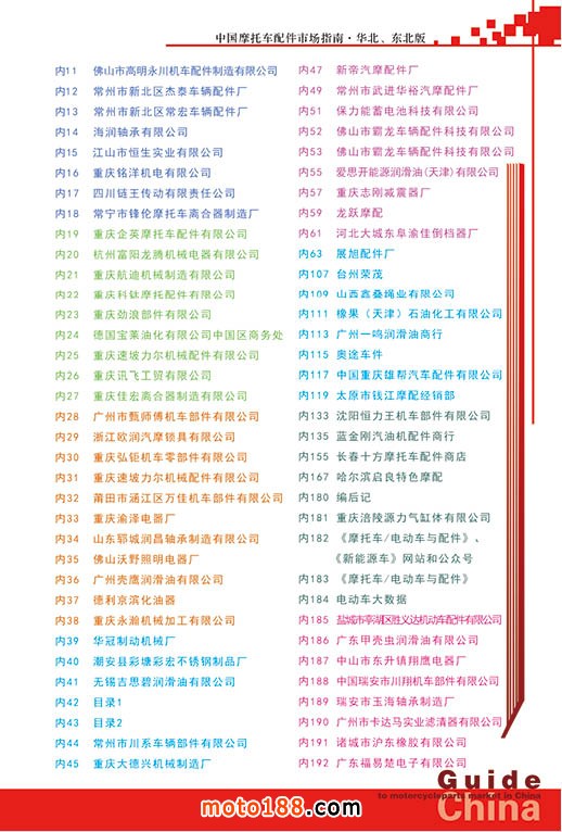繼2010年開始出版《中國(guó)摩托車配件市場(chǎng)指南》系列叢書,到今年已經(jīng)是第六個(gè)年頭,本套叢書已經(jīng)過(guò)二次升級(jí)。《北方市場(chǎng)指南》是第二次升級(jí)版的終結(jié)版,和上個(gè)版本有所不同是我們將西北地區(qū)市場(chǎng)獨(dú)立成冊(cè),因而本次升級(jí)版為一套六本。