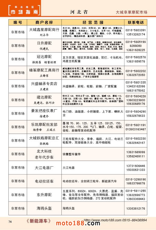 中國摩配市場從上世紀九十年代開始經過高速度的發展,正逐步減速,摩托車行業也漸呈式微,與之緊密相關的后市場的配件與維修也呈逐步下滑之勢,取代摩托車的在發達地區是汽車,欠發達地區是電動兩輪、電動三輪,甚至電動四輪車,隨著經濟的發展,出行的多樣化,也給了消費者多重的選擇。目前現有的摩托車及配件市場,也不再是以純摩托車為主體,有的市場電動車取代了摩托車,有的商店也是混合經營,這些變化在《市場指南》里面都有所反應。這次《北方指南》一些小市場不再單列,并入到相應的省份中去;以前去市場的公交線路,書中也不再列入,因為現在的地圖導航功能十分強大,既新又準。