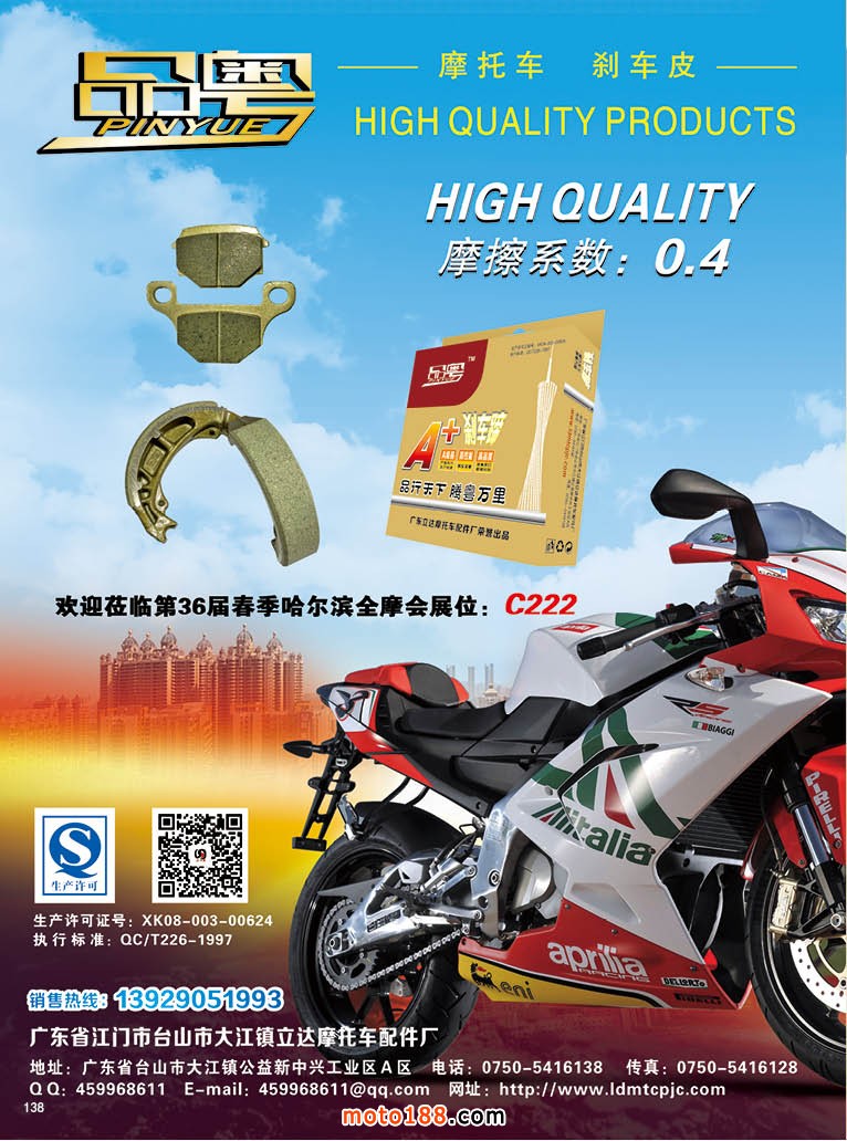 値此全摩會的召開,我們將去冬今春的勞動成果展示給大家:《中國摩托車配件市場指南.北方版》簡稱《北方市場指南》,這也是第二次升級版的終結版,本書將在哈爾濱全國摩配會議面向全行業正式首發,有覆蓋不到的地區,可在我們m.zjsoxnet.com網站上看得到,可以查閱資料也可以下載保存脫機瀏覽。