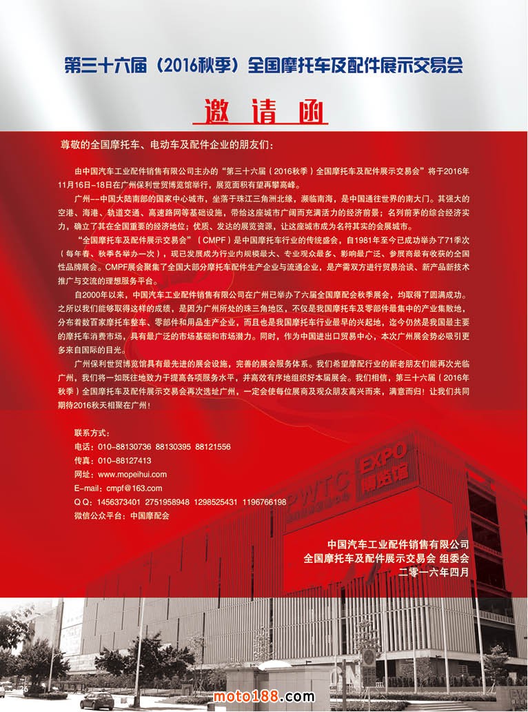 內26 第36屆(2016秋季)全國摩托車及配件展示交易會邀請函