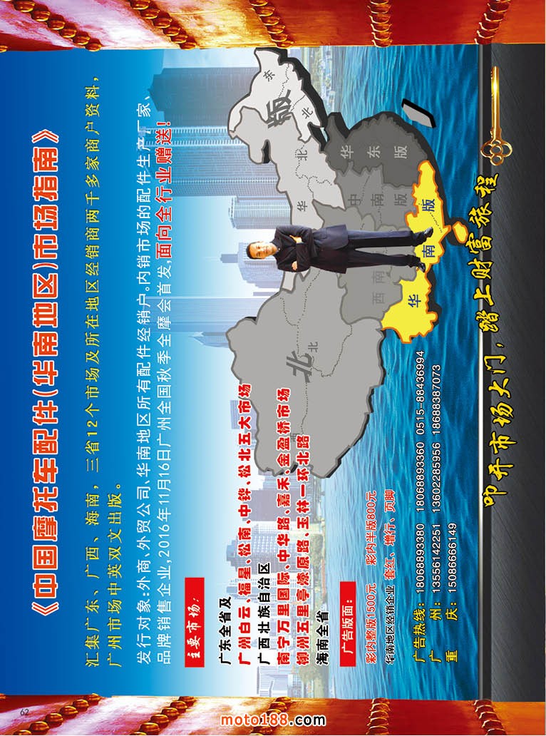 從下半年開(kāi)始,開(kāi)設(shè)外貿(mào)專(zhuān)題。今年內(nèi)銷(xiāo)市場(chǎng)疲軟,然而廣州幾大市場(chǎng)在外貿(mào)出口業(yè)務(wù)上,除了價(jià)格下滑之外,出口量并沒(méi)有明顯的下降,廣州羅沖圍一帶市場(chǎng)以白云市場(chǎng)為龍頭,一批年輕經(jīng)銷(xiāo)商們朝氣蓬勃的活躍在外貿(mào)市場(chǎng)上,他們更注重品牌化,拒絕假冒;他們立足于傳統(tǒng)行業(yè),又運(yùn)用互聯(lián)網(wǎng)技術(shù),將摩托車(chē)配件貿(mào)易逐步向電子商務(wù)化進(jìn)軍;為了拓展國(guó)外市場(chǎng),他們摒棄門(mén)戶(hù)之見(jiàn),抱團(tuán)出海,除了組織地方商會(huì),又將地方商會(huì)聯(lián)合起來(lái),組成對(duì)外貿(mào)易的航母;他們使出各種解數(shù),一時(shí)間風(fēng)生水起,給行業(yè)帶來(lái)了勃勃生機(jī),他們立足于當(dāng)下,卻志在未來(lái),正逐步引領(lǐng)行業(yè)向新的目標(biāo)前進(jìn),為此我們做了一個(gè)專(zhuān)題的報(bào)道《長(zhǎng)風(fēng)破浪會(huì)有時(shí),直掛云帆濟(jì)滄海》,由于這期雜志時(shí)間緊迫,以及版面的限制,請(qǐng)見(jiàn)下一期雜志。本期雜志用了四頁(yè)紙報(bào)道了這樣一個(gè)新成立的團(tuán)隊(duì),他們?yōu)樾袠I(yè)帶來(lái)變革,帶入新的氣象。正是因?yàn)槲覀冇幸淮哂袊?guó)際化視野的摩配商人,也是我們行業(yè)希望所在,未來(lái)所在。
