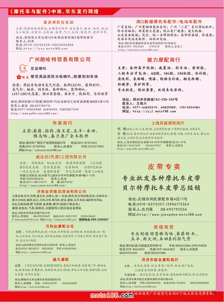 從下半年開(kāi)始,開(kāi)設(shè)外貿(mào)專(zhuān)題。今年內(nèi)銷(xiāo)市場(chǎng)疲軟,然而廣州幾大市場(chǎng)在外貿(mào)出口業(yè)務(wù)上,除了價(jià)格下滑之外,出口量并沒(méi)有明顯的下降,廣州羅沖圍一帶市場(chǎng)以白云市場(chǎng)為龍頭,一批年輕經(jīng)銷(xiāo)商們朝氣蓬勃的活躍在外貿(mào)市場(chǎng)上,他們更注重品牌化,拒絕假冒;他們立足于傳統(tǒng)行業(yè),又運(yùn)用互聯(lián)網(wǎng)技術(shù),將摩托車(chē)配件貿(mào)易逐步向電子商務(wù)化進(jìn)軍;為了拓展國(guó)外市場(chǎng),他們摒棄門(mén)戶(hù)之見(jiàn),抱團(tuán)出海,除了組織地方商會(huì),又將地方商會(huì)聯(lián)合起來(lái),組成對(duì)外貿(mào)易的航母;他們使出各種解數(shù),一時(shí)間風(fēng)生水起,給行業(yè)帶來(lái)了勃勃生機(jī),他們立足于當(dāng)下,卻志在未來(lái),正逐步引領(lǐng)行業(yè)向新的目標(biāo)前進(jìn),為此我們做了一個(gè)專(zhuān)題的報(bào)道《長(zhǎng)風(fēng)破浪會(huì)有時(shí),直掛云帆濟(jì)滄?!?,由于這期雜志時(shí)間緊迫,以及版面的限制,請(qǐng)見(jiàn)下一期雜志。本期雜志用了四頁(yè)紙報(bào)道了這樣一個(gè)新成立的團(tuán)隊(duì),他們?yōu)樾袠I(yè)帶來(lái)變革,帶入新的氣象。正是因?yàn)槲覀冇幸淮哂袊?guó)際化視野的摩配商人,也是我們行業(yè)希望所在,未來(lái)所在。