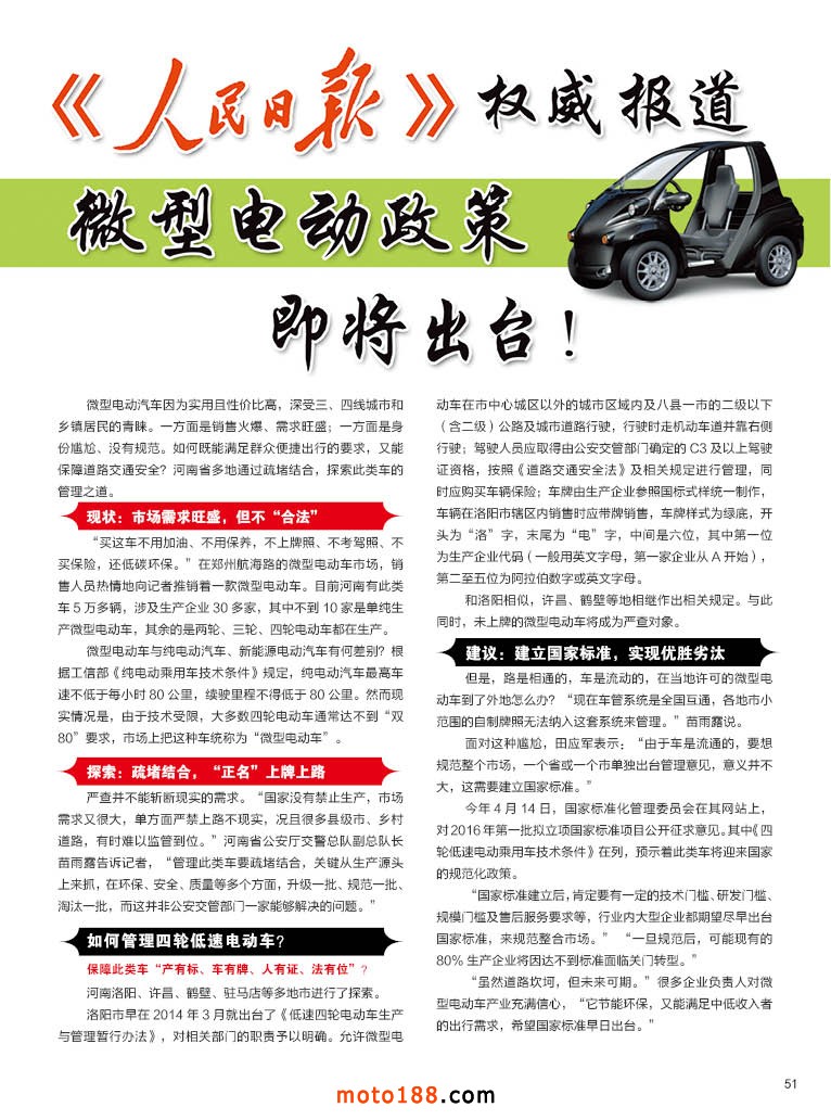 內51 《人民日報》權威報道微型電動政策即將出臺!