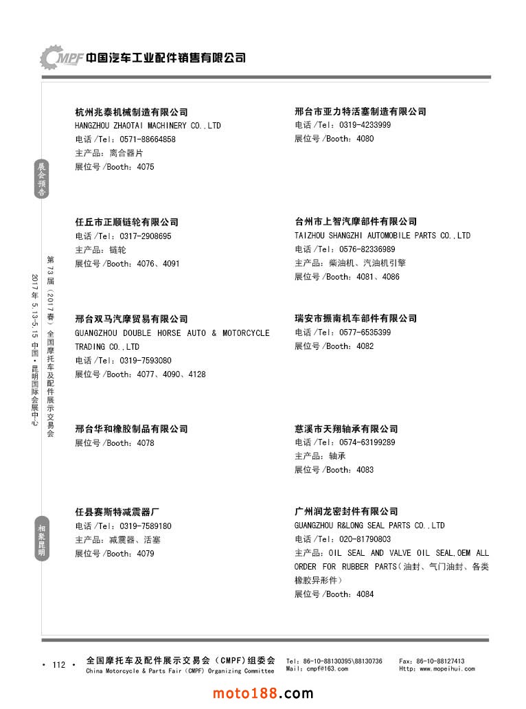 第36屆秋季(廣州)全國摩托車及配件展示交易會參展企業名錄