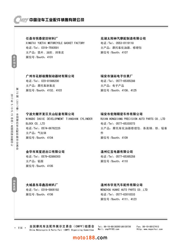 第36屆秋季(廣州)全國(guó)摩托車及配件展示交易會(huì)參展企業(yè)名錄