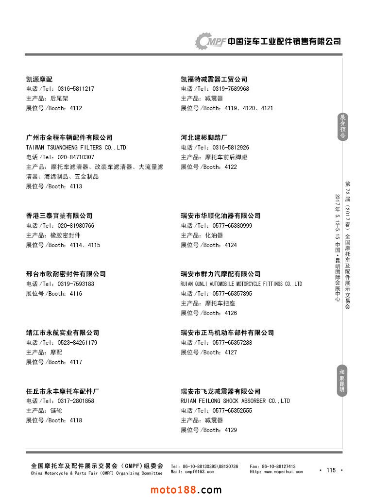 第36屆秋季(廣州)全國摩托車及配件展示交易會參展企業名錄