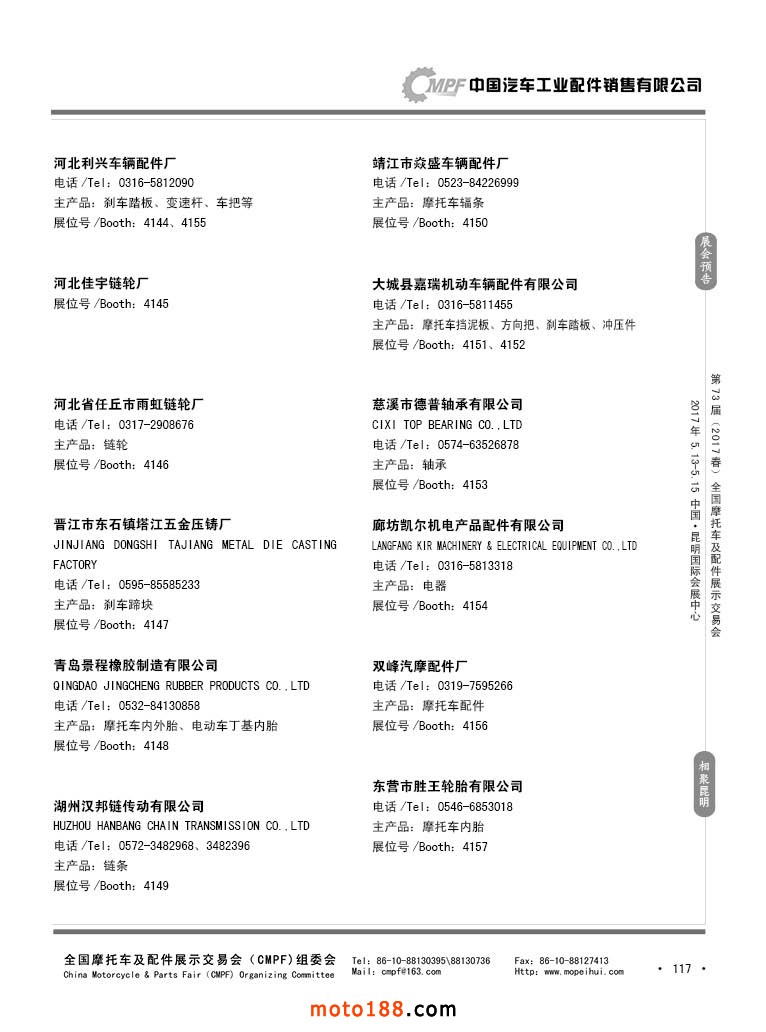 第36屆秋季(廣州)全國摩托車及配件展示交易會參展企業名錄