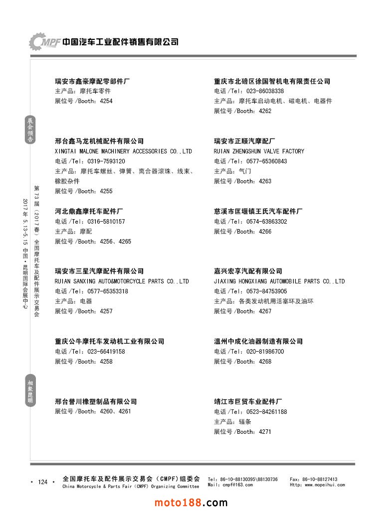第36屆秋季(廣州)全國摩托車及配件展示交易會參展企業名錄