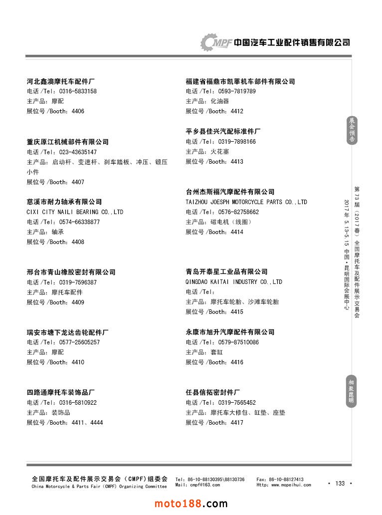 第36屆秋季(廣州)全國摩托車及配件展示交易會參展企業名錄