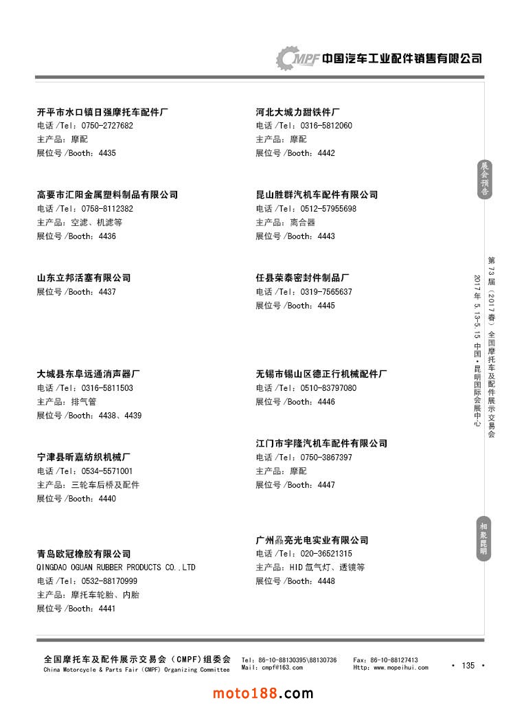 第36屆秋季(廣州)全國摩托車及配件展示交易會參展企業名錄