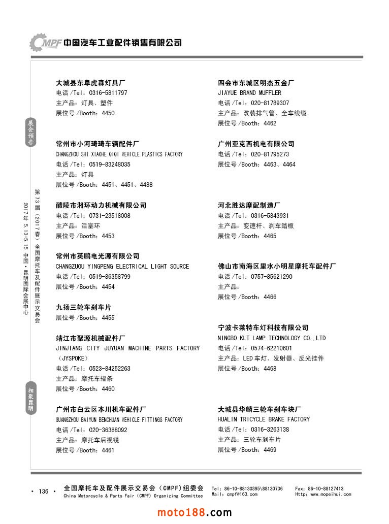 第36屆秋季(廣州)全國摩托車及配件展示交易會(huì)參展企業(yè)名錄
