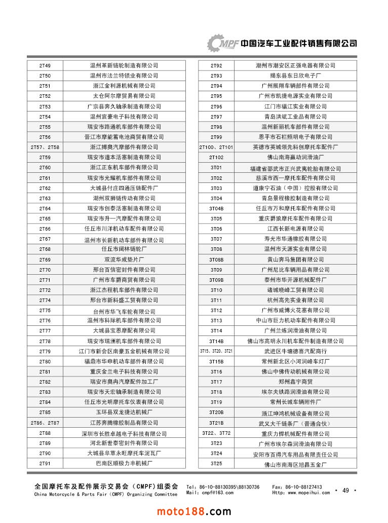 第36屆秋季(廣州)全國摩托車及配件展示交易會參展單位名錄