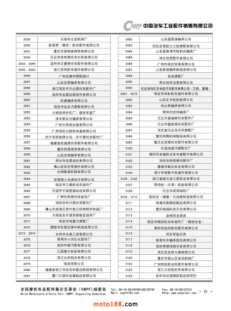 第36屆秋季(廣州)全國摩托車及配件展示交易會參展單位名錄