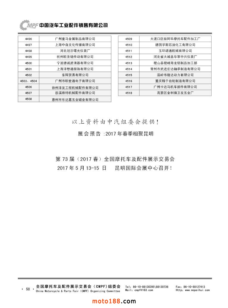 第36屆秋季(廣州)全國摩托車及配件展示交易會參展單位名錄