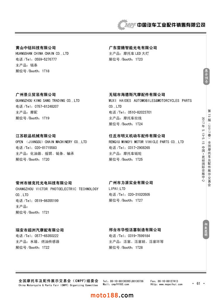 第36屆秋季(廣州)全國摩托車及配件展示交易會參展企業名錄