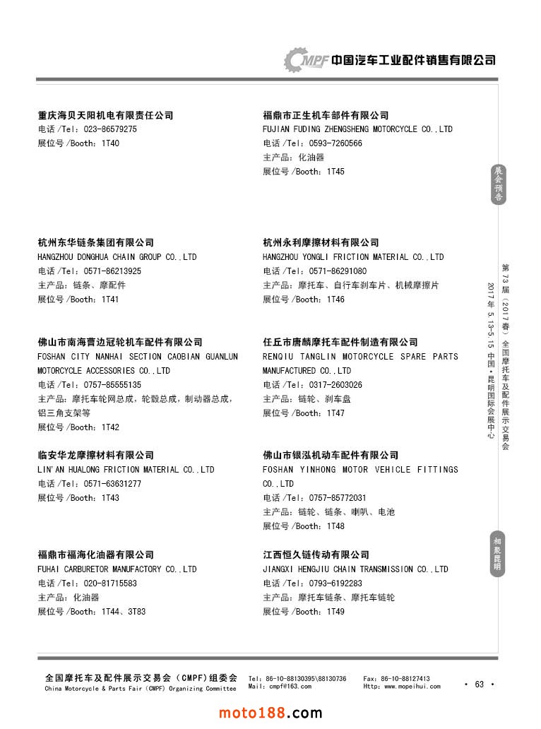 第36屆秋季(廣州)全國摩托車及配件展示交易會參展企業名錄