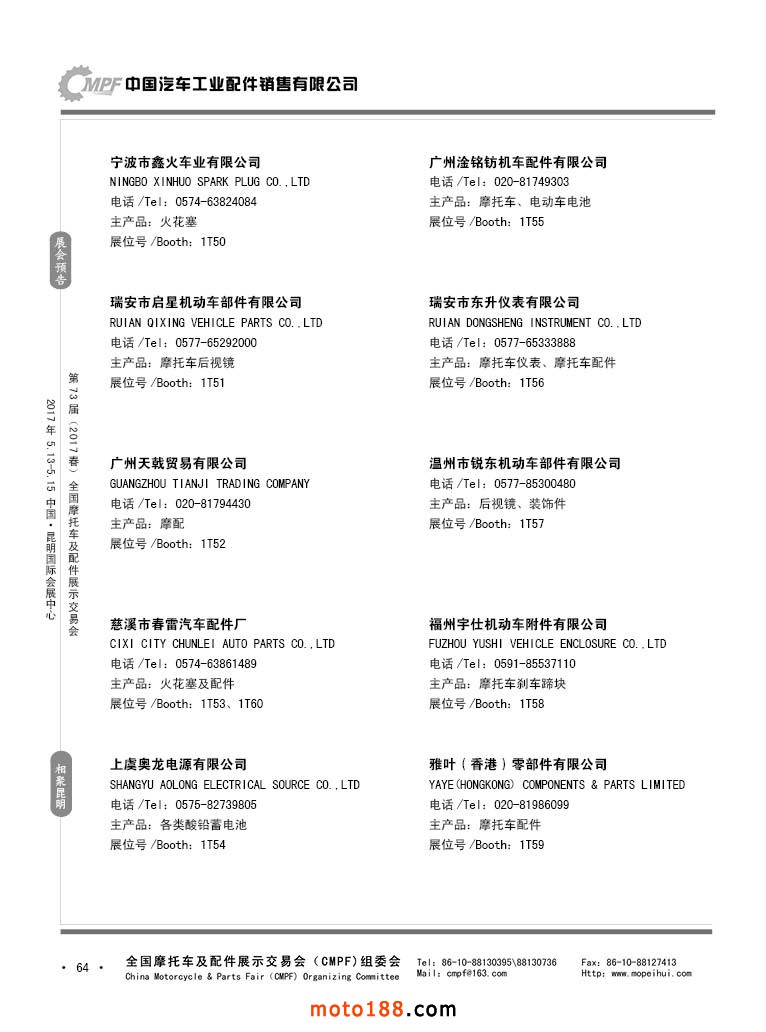 第36屆秋季(廣州)全國摩托車及配件展示交易會參展企業名錄