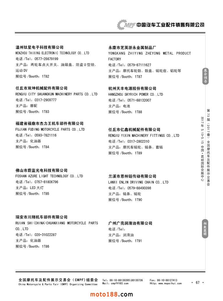 第36屆秋季(廣州)全國摩托車及配件展示交易會參展企業名錄