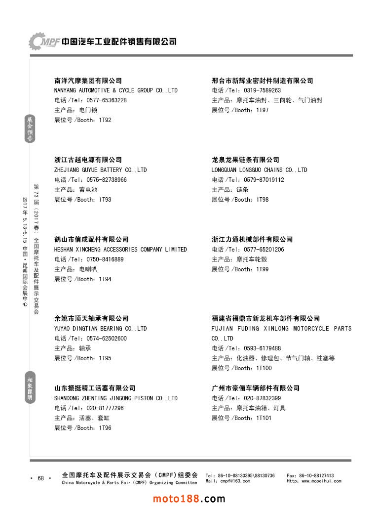 第36屆秋季(廣州)全國摩托車及配件展示交易會參展企業(yè)名錄