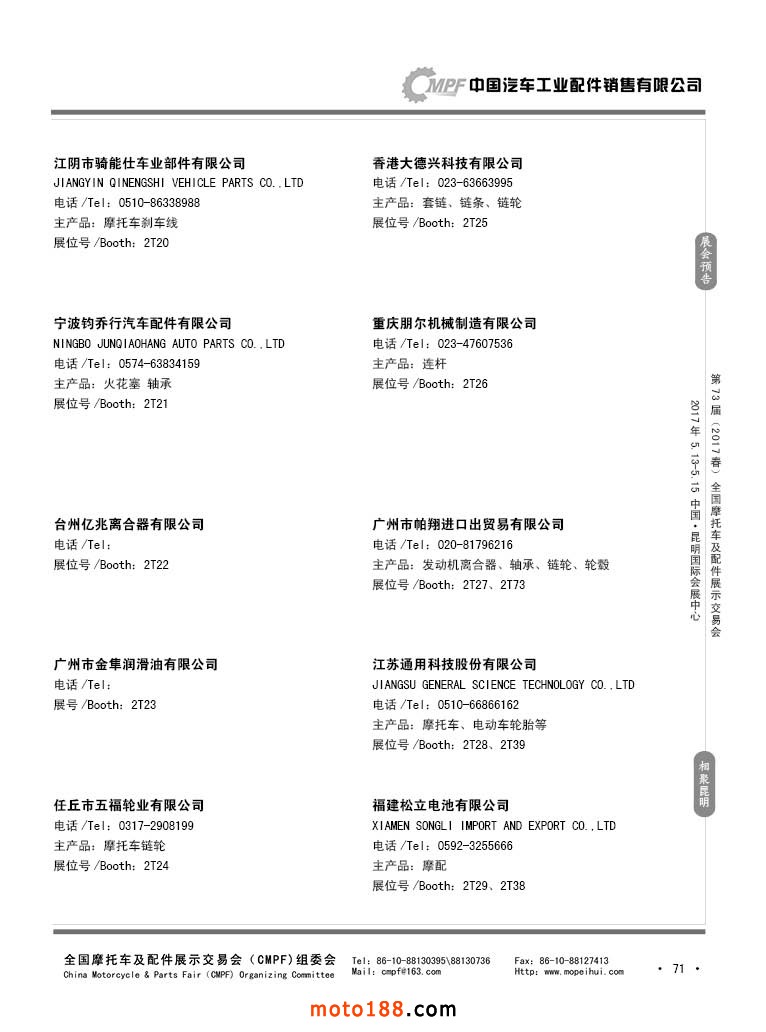 第36屆秋季(廣州)全國摩托車及配件展示交易會參展企業名錄