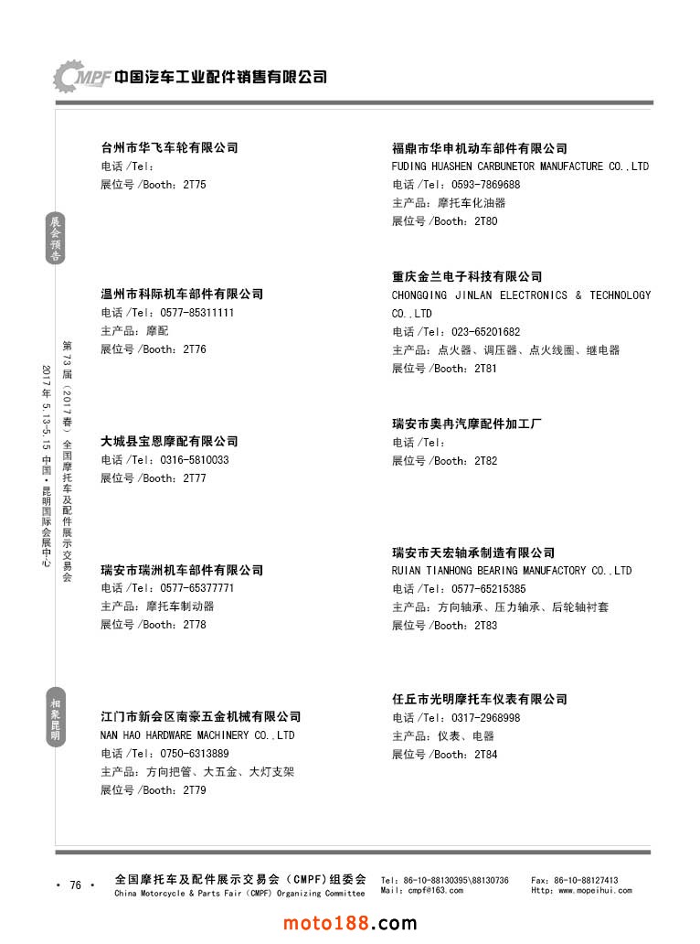 第36屆秋季(廣州)全國摩托車及配件展示交易會參展企業(yè)名錄