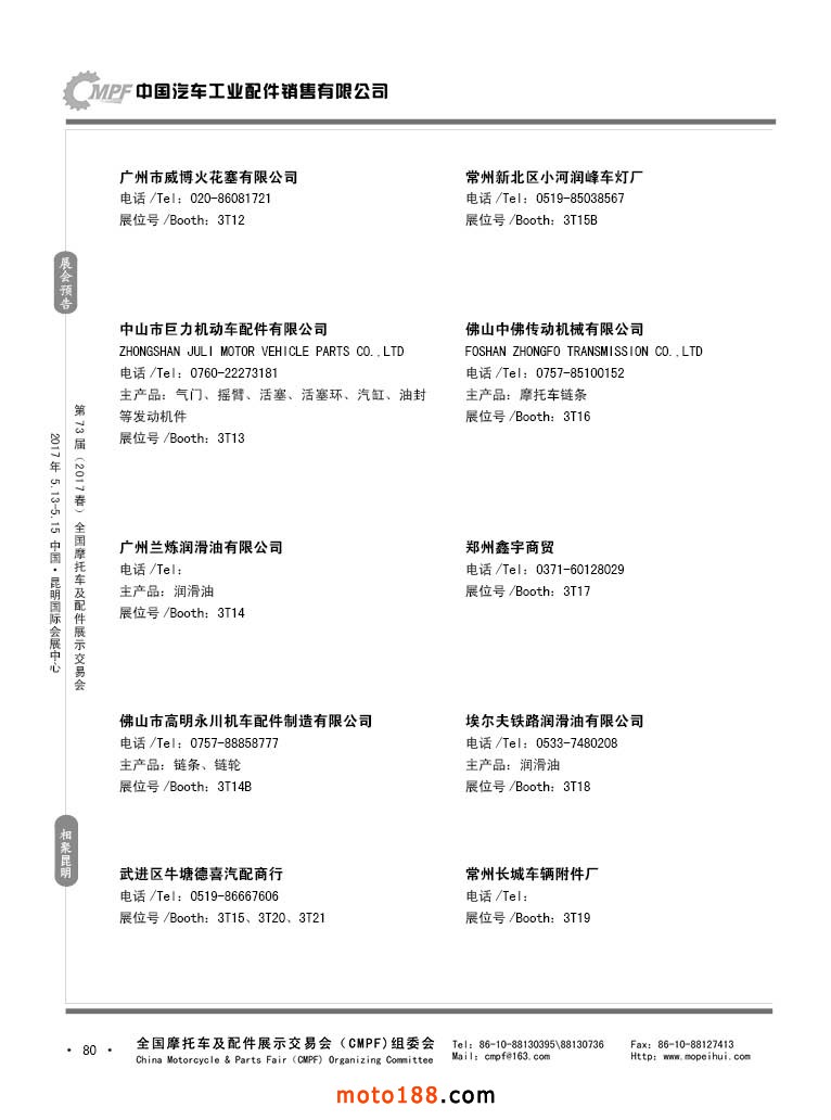第36屆秋季(廣州)全國摩托車及配件展示交易會參展企業名錄