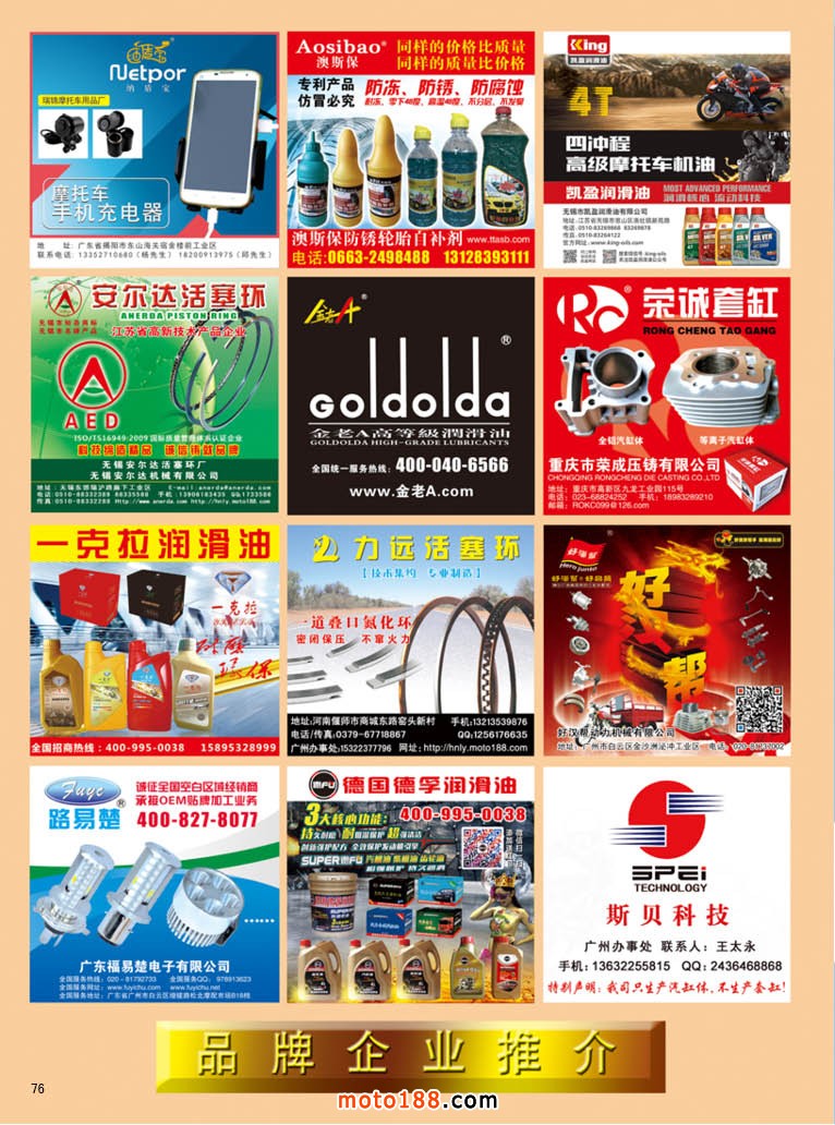 行業期盼已久的廣州全國摩托車暨配件展示交易會終于開幕了,我們經過大半年的努力,為行業奉上了我們的勞動成果:《中國摩托車配件華南市場指南》第二次升級版, 本次升級版,在編排過程中,以廣州市場為核心,加上海南,新增廣西市場。廣州羅沖圍一帶市場現在已經成為行業的半壁江山,目前這些企業以外貿為主,吞吐量巨大,我們用了中英文形式編排,所有英文,我們有專業人員翻譯,確保翻譯的質量,編排順序由市場從東往西再往南。