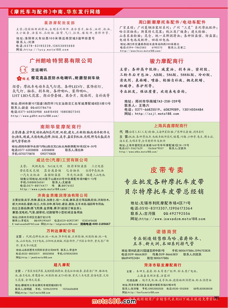 行業期盼已久的廣州全國摩托車暨配件展示交易會終于開幕了,我們經過大半年的努力,為行業奉上了我們的勞動成果:《中國摩托車配件華南市場指南》第二次升級版, 本次升級版,在編排過程中,以廣州市場為核心,加上海南,新增廣西市場。廣州羅沖圍一帶市場現在已經成為行業的半壁江山,目前這些企業以外貿為主,吞吐量巨大,我們用了中英文形式編排,所有英文,我們有專業人員翻譯,確保翻譯的質量,編排順序由市場從東往西再往南。