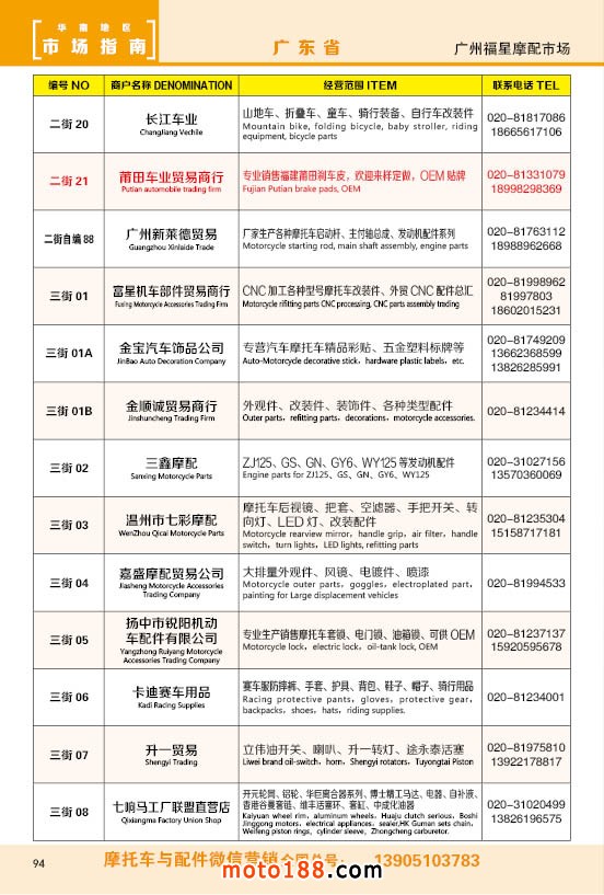 內94 廣州福星摩配市場商戶