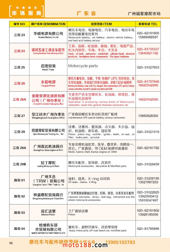 內98 廣州福星摩配市場商戶